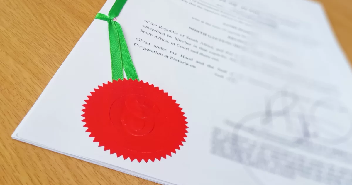 - The document will then be printed out, Notarized then sent to the High court for an Apostille.